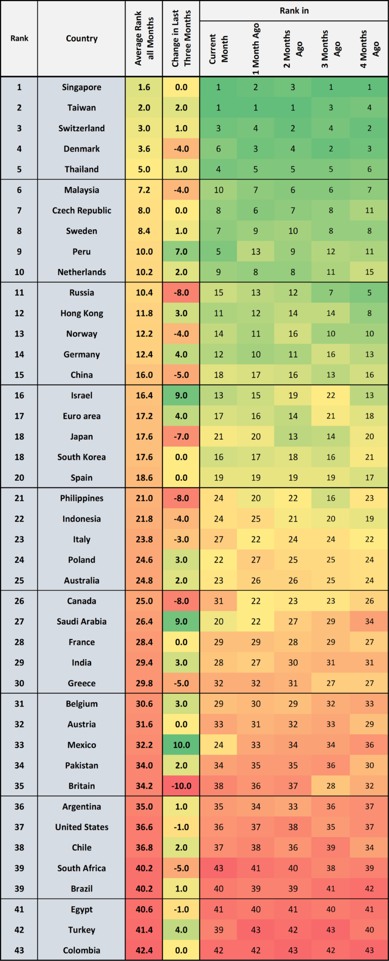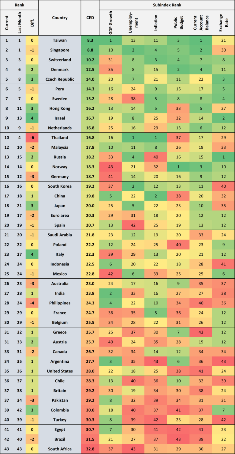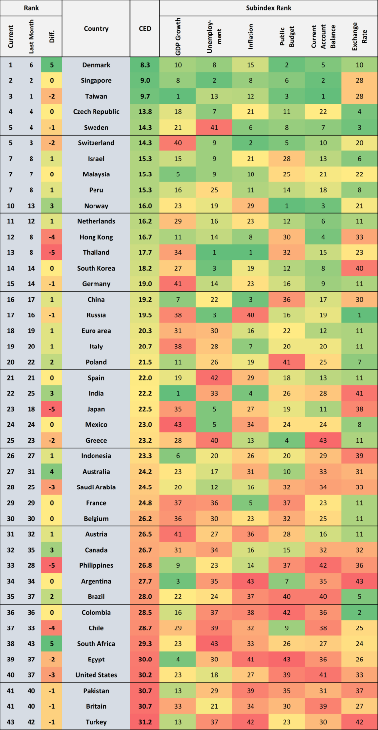 The current ranking based on six macroeconomic indicators: